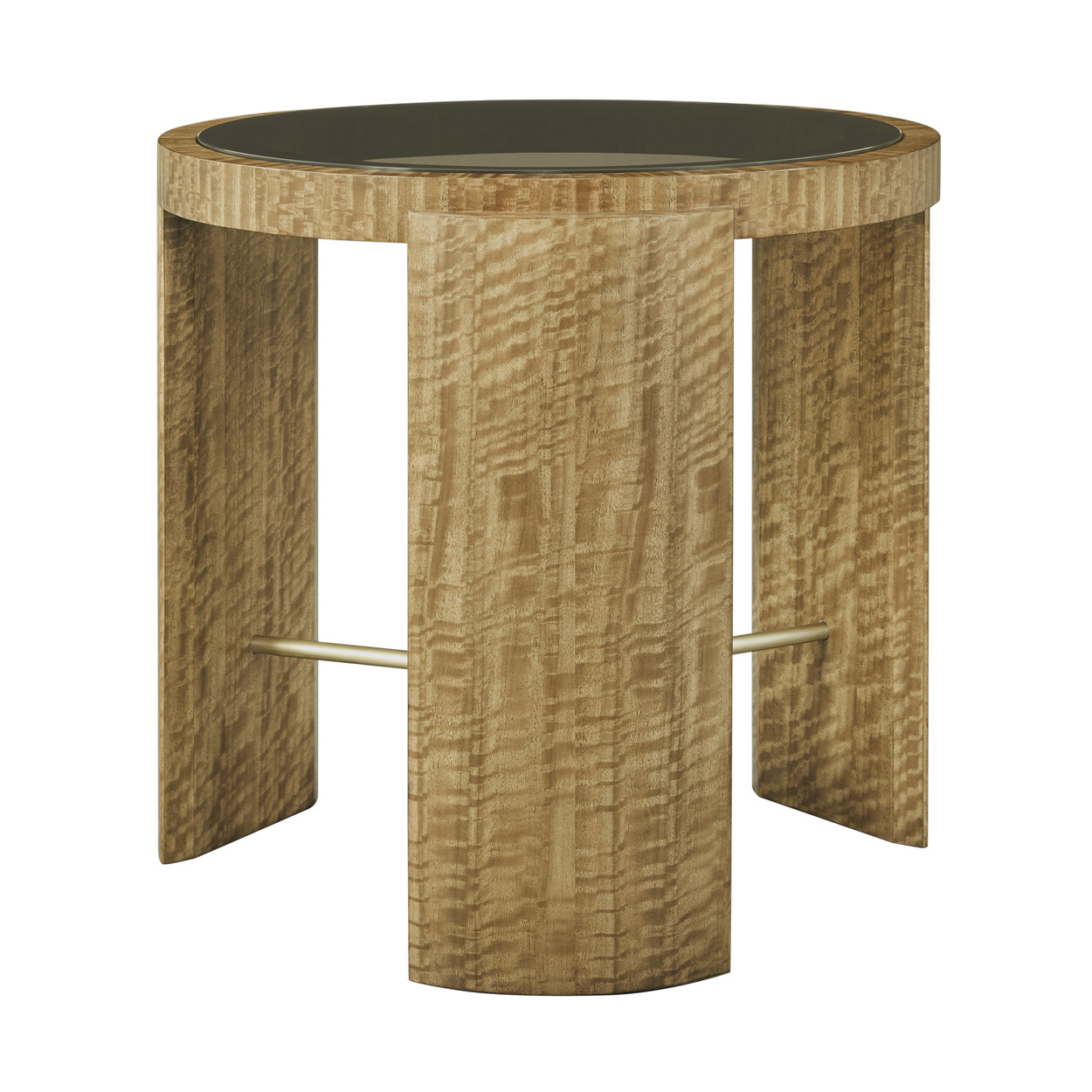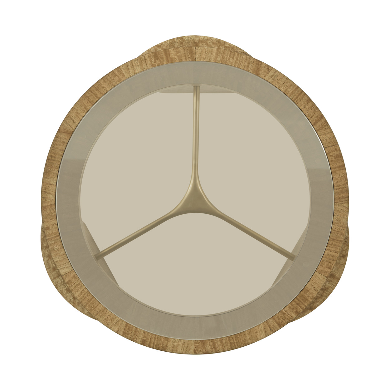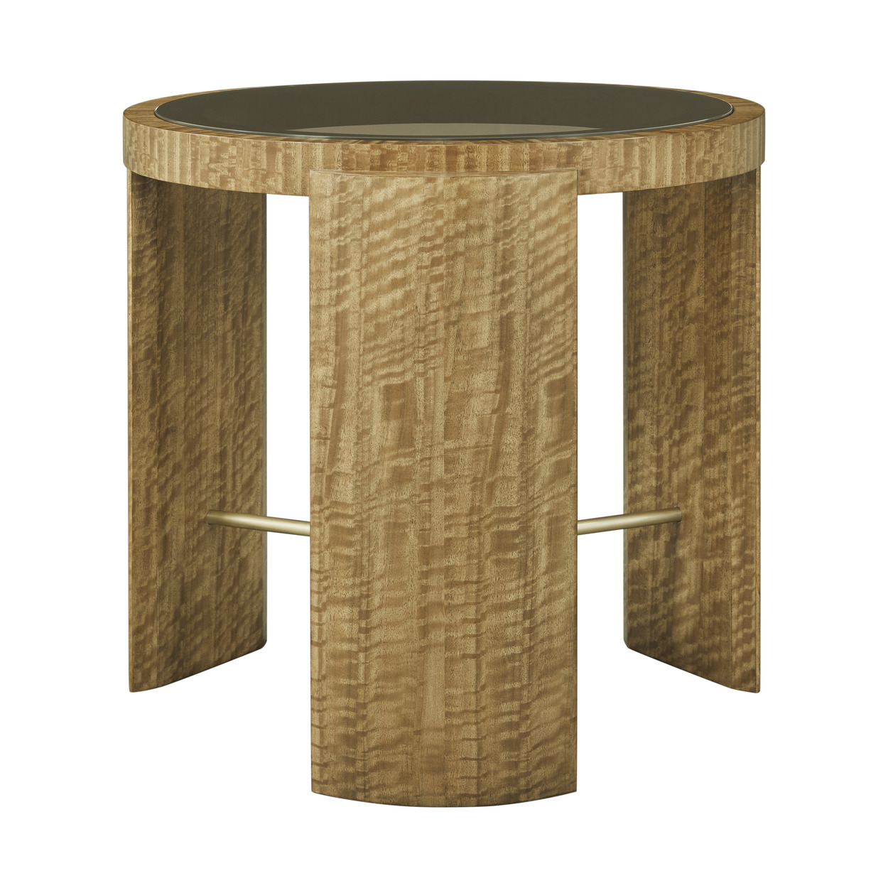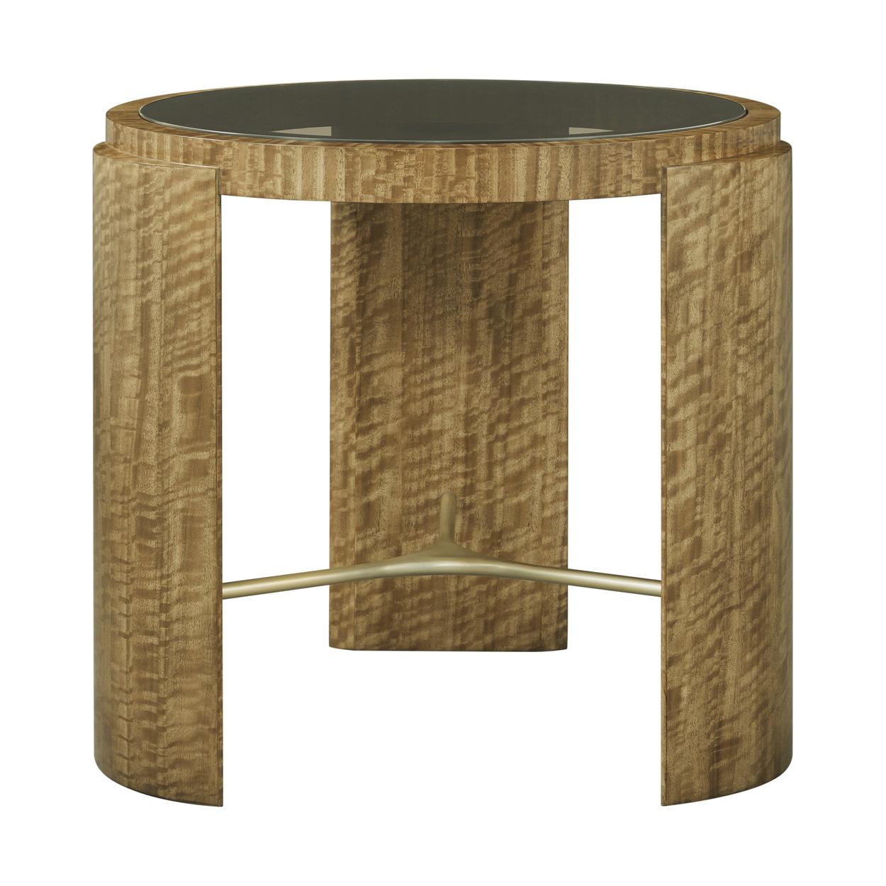 The Jenson Side Table conveys a remarkable sense of craftsmanship and luxury. A translucent glass center becomes a window to a Glazed Champagne finished stretcher and legs surfaced in eucalyptus. Plaza Wood, Brass, Veneer Item# TA50296