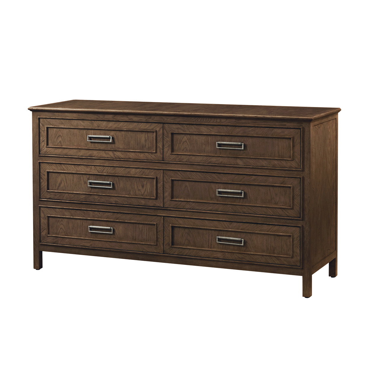 A magnificent display of craftsmanship can be felt across the six-drawer Surrey Dresser. Handcrafted from oak wood with surfaces in a veneer crown. Finished in Dover or Brownstone. Finish: Brownstone Solid Wood; Veneer Item# TA60151.C374